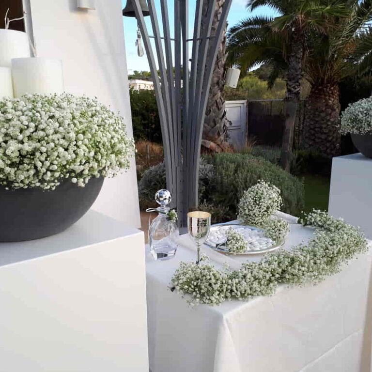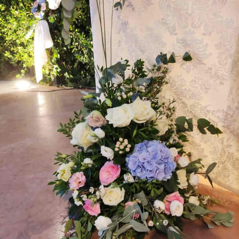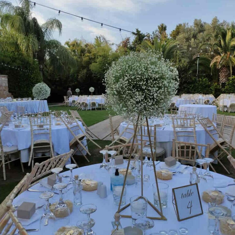 Σε αυτό τον γάμο στο Κτήμα Μπραϊμνιώτη πρωταγωνιστής του στολισμού ήταν το λευκό, γι αυτό επιλέχθηκαν κυριάρχα λουλούδια όπως η ορτανσία, το τριαντάφυλλο, το μαργαριτάρι…