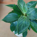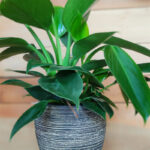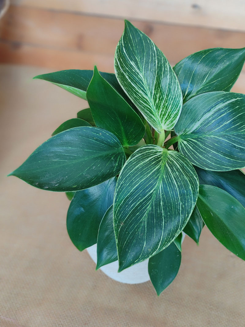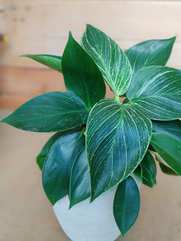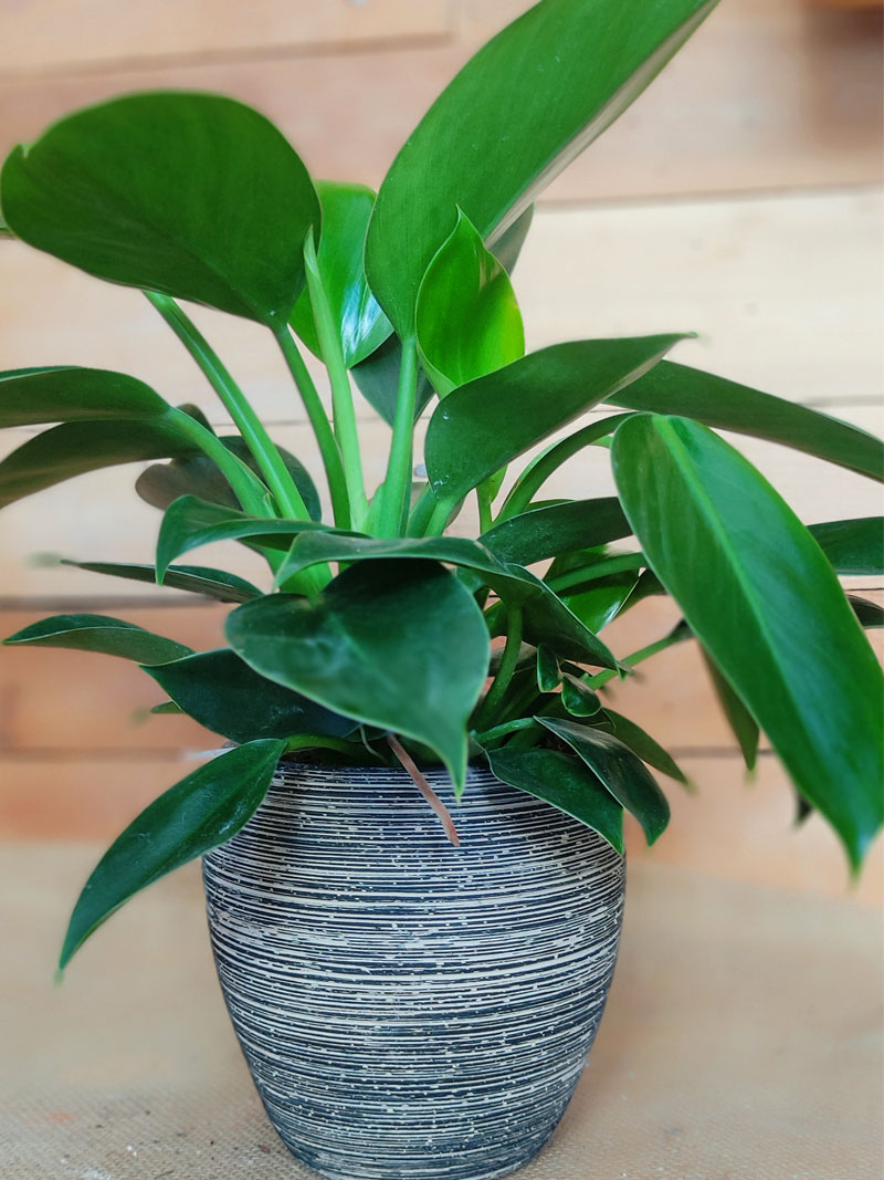 Φυτό εσωτερικού χώρου ποικιλίας φυλλόδεντρου τοποθετημένο σε εγχάρακτο κεραμικό ποτ σε neutral απόχρωση.