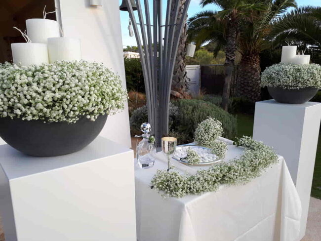 Στο Παγκόσμιο Πολιτιστικό Ίδρυμα Ελληνισμού Διασποράς στη Νέα Φιλαδέλφεια αναλάβαμε έναν πολιτικό γάμο, πιο λιτό και με boho αισθητική.Για έναν κλειστό κύκλο αγαπημένων, στολίσαμε το χώρο του ΠΠΙΕΔ με βαζάκια με λουλούδια όπως τριαντάφυλλα, λυσιάνθο, ματρικάρια και λεβάντα.