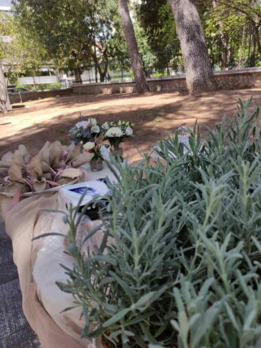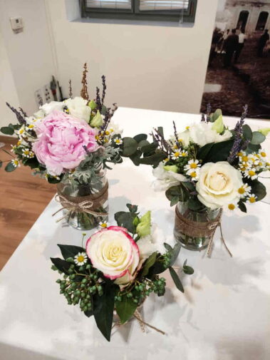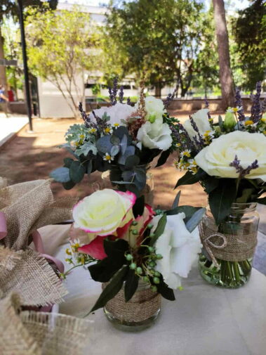 Στο Παγκόσμιο Πολιτιστικό Ίδρυμα Ελληνισμού Διασποράς στη Νέα Φιλαδέλφεια αναλάβαμε έναν πολιτικό γάμο, πιο λιτό και με boho αισθητική.Για έναν κλειστό κύκλο αγαπημένων, στολίσαμε το χώρο του ΠΠΙΕΔ με βαζάκια με λουλούδια όπως τριαντάφυλλα, λυσιάνθο, ματρικάρια και λεβάντα.